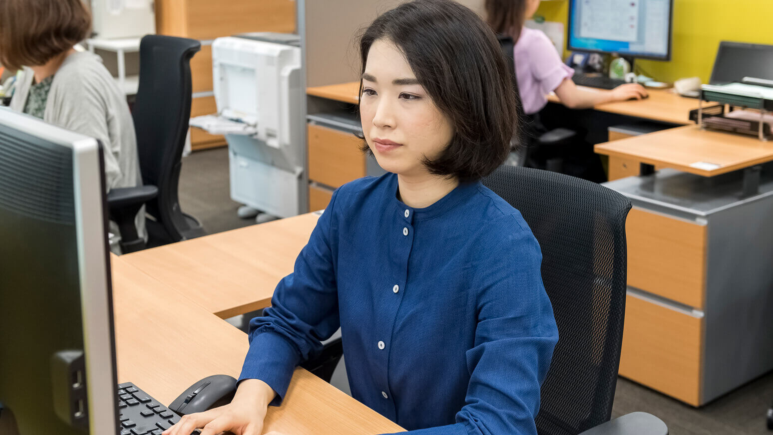 パートナー弁護士1名とアソシエイト弁護士2名の計3名を担当しています。中国との取引や独占禁止法に関連した案件等を多く取り扱っており、中にはメディアで報道されるような大きな事件もあるため、機密情報の管理にも気を配っています。弁護士のスケジュール管理、会議のアレンジ、電話応対といった一般的な秘書業務に加え、案件に関わる様々な書類の作成・修正、データ管理、依頼者への請求書発行、資料管理など、その業務範囲に限りはありません。大量の事務処理をかなりタイトなスケジュールで行うことも少なくありませんが、秘書間で連携を取り協力し合って作業し、多忙な弁護士の業務が円滑に進められるよう努めています。